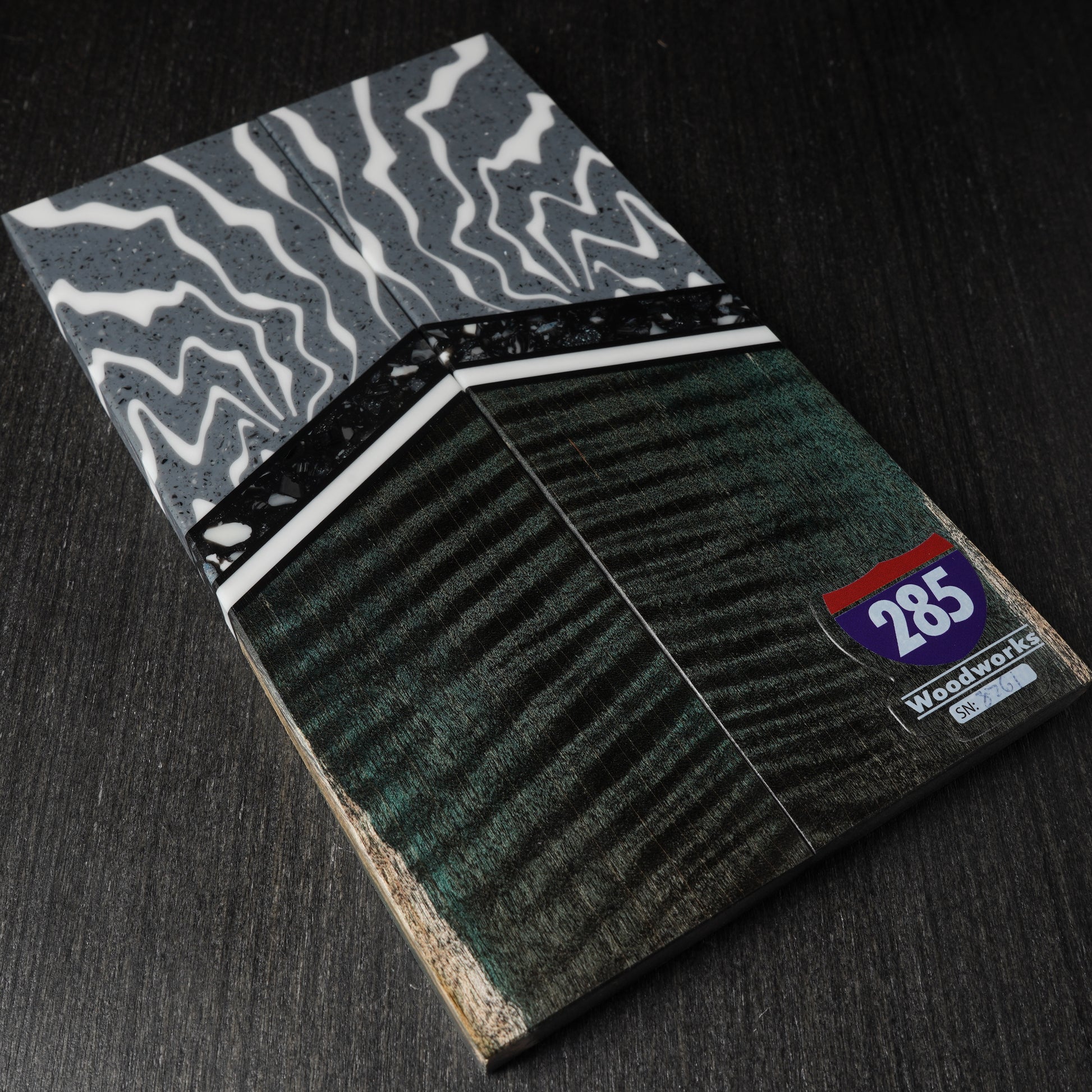 These hand crafted segmented knife scales are made one at a time using house stabilized woods and hand cast resin components. They ship flat, even, and ready for glue up. The scales pictured will be the exact set you receive. Buy with complete confidence.