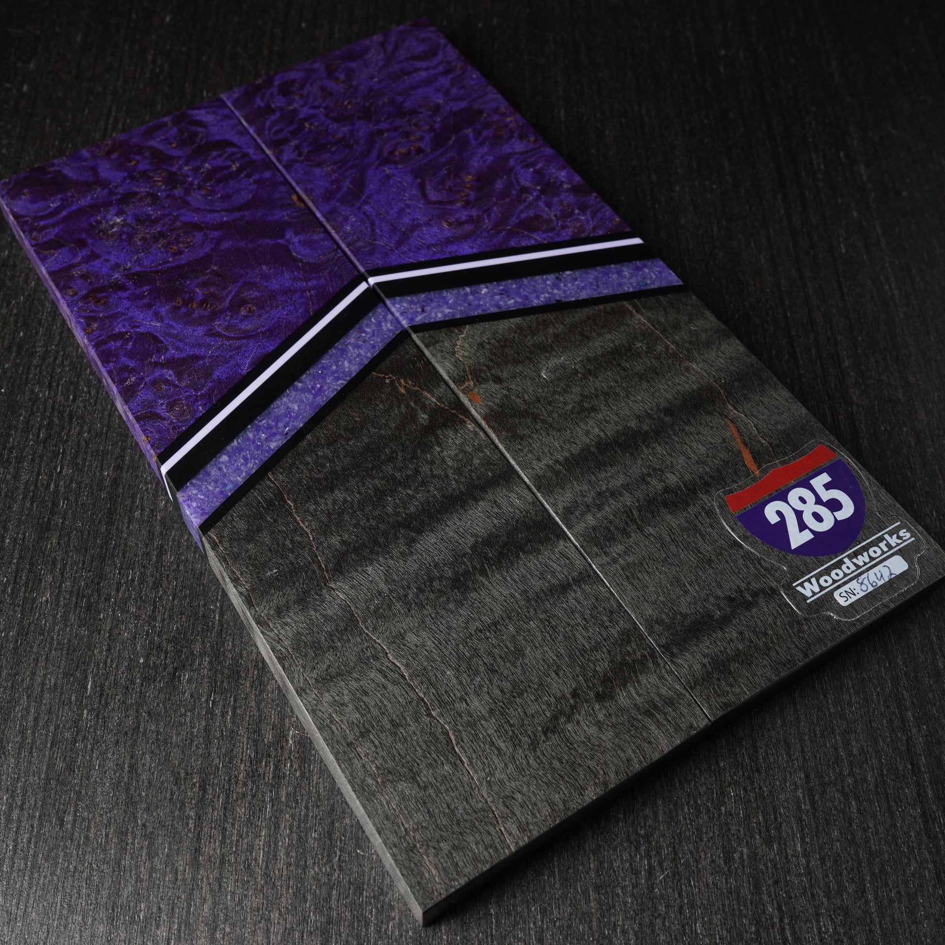 These hand crafted segmented knife scales are made one at a time using house stabilized woods and hand cast resin components. They ship flat, even, and ready for glue up. The scales pictured will be the exact set you receive. Buy with complete confidence.