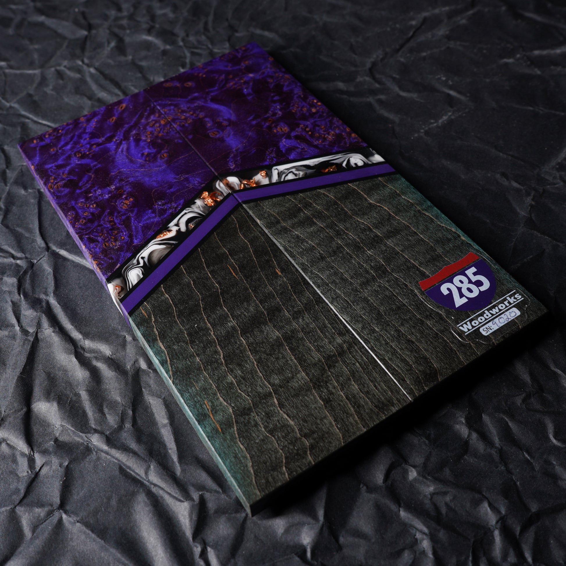 These hand crafted segmented knife scales are made one at a time using house stabilized woods and hand cast resin components. They ship flat, even, and ready for glue up. The scales pictured will be the exact set you receive. Buy with complete confidence.