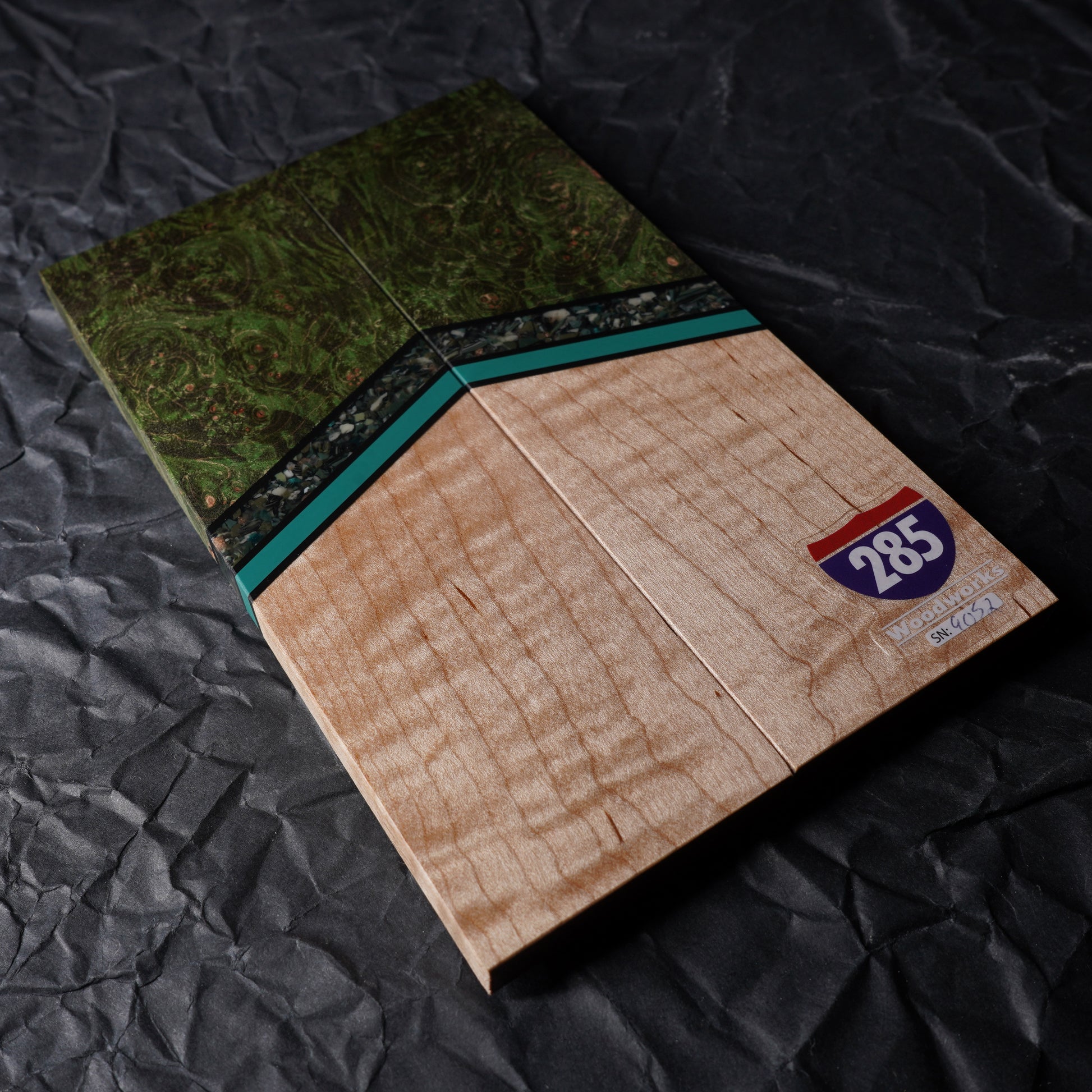 These hand crafted segmented knife scales are made one at a time using house stabilized woods and hand cast resin components. They ship flat, even, and ready for glue up. The scales pictured will be the exact set you receive. Buy with complete confidence.