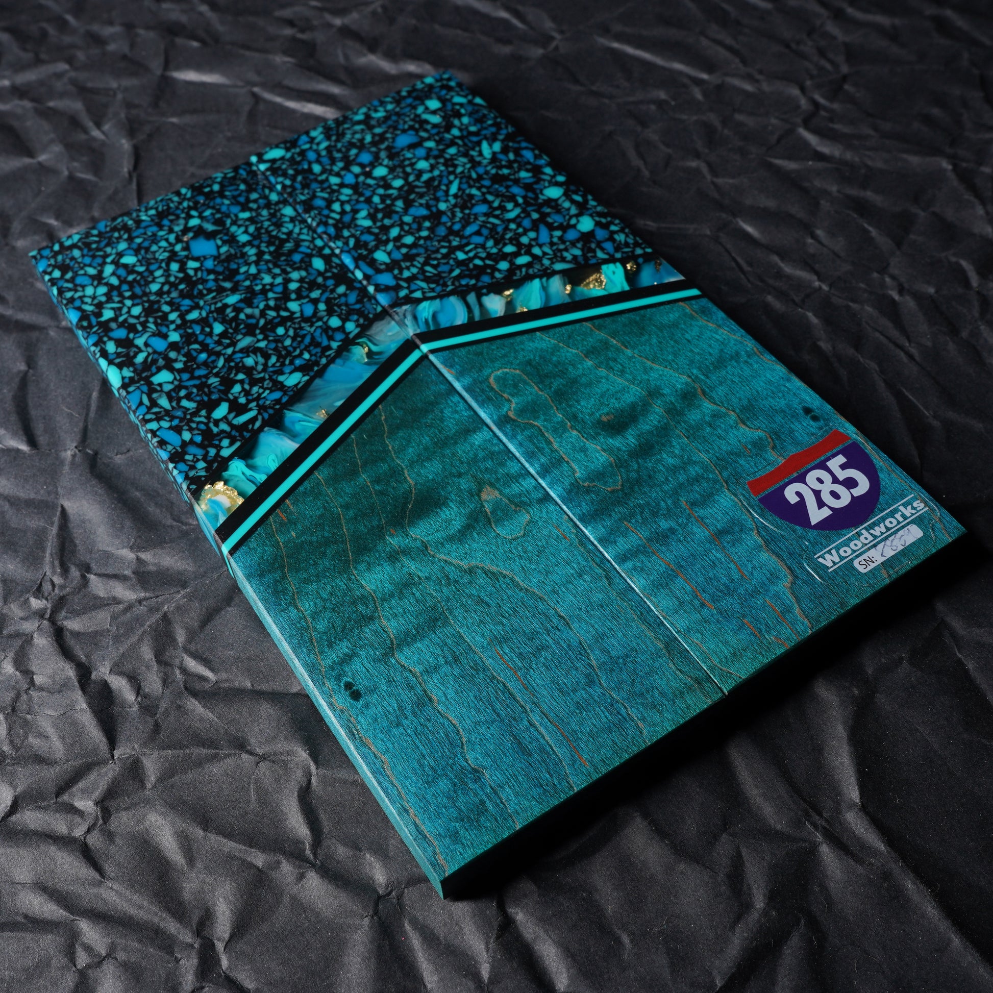 These hand crafted segmented knife scales are made one at a time using house stabilized woods and hand cast resin components. They ship flat, even, and ready for glue up. The scales pictured will be the exact set you receive. Buy with complete confidence.