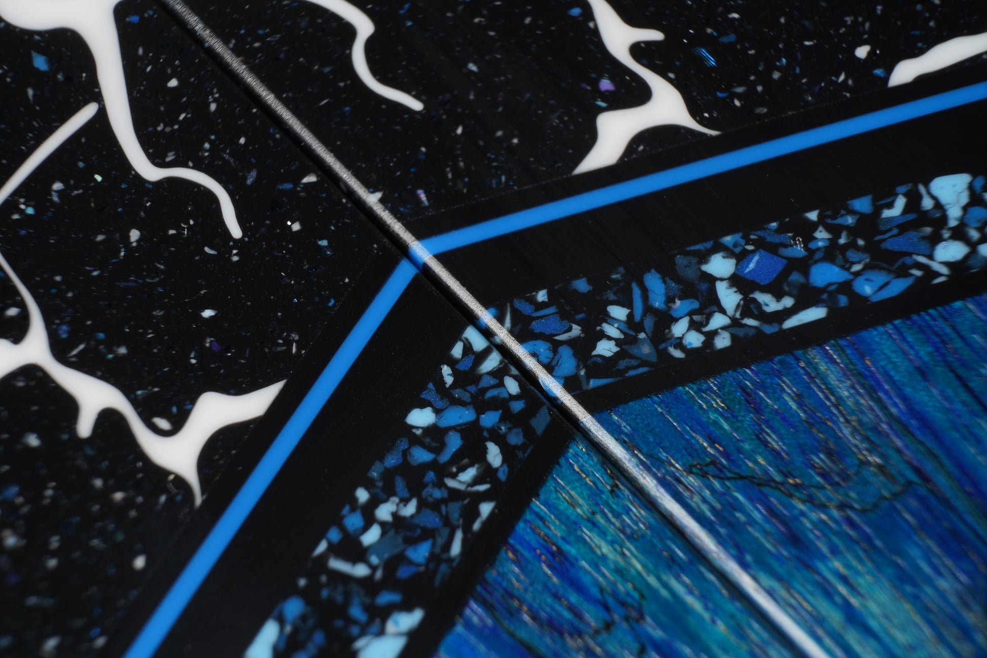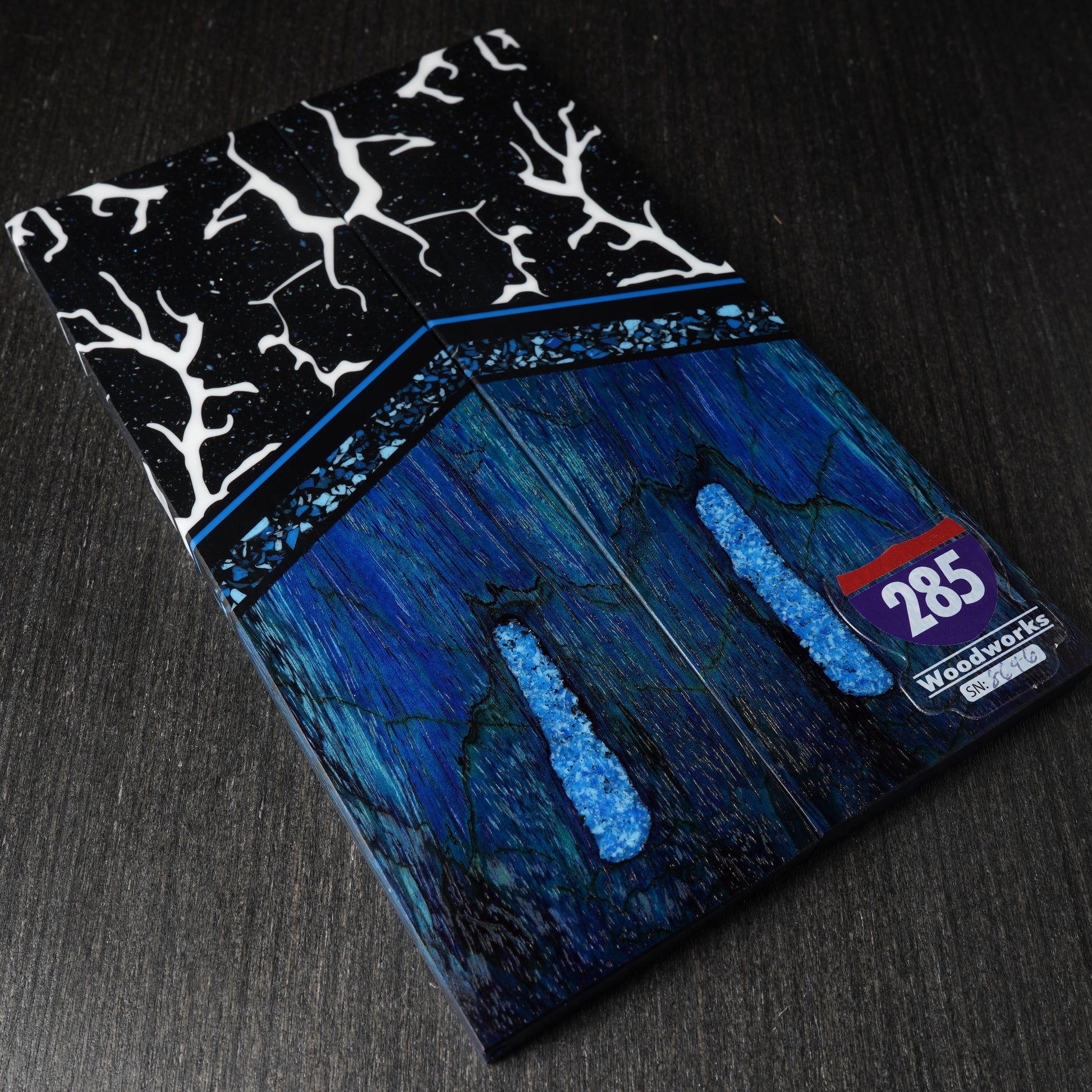 These hand crafted segmented knife scales are made one at a time using house stabilized woods and hand cast resin components. They ship flat, even, and ready for glue up. The scales pictured will be the exact set you receive. Buy with complete confidence.