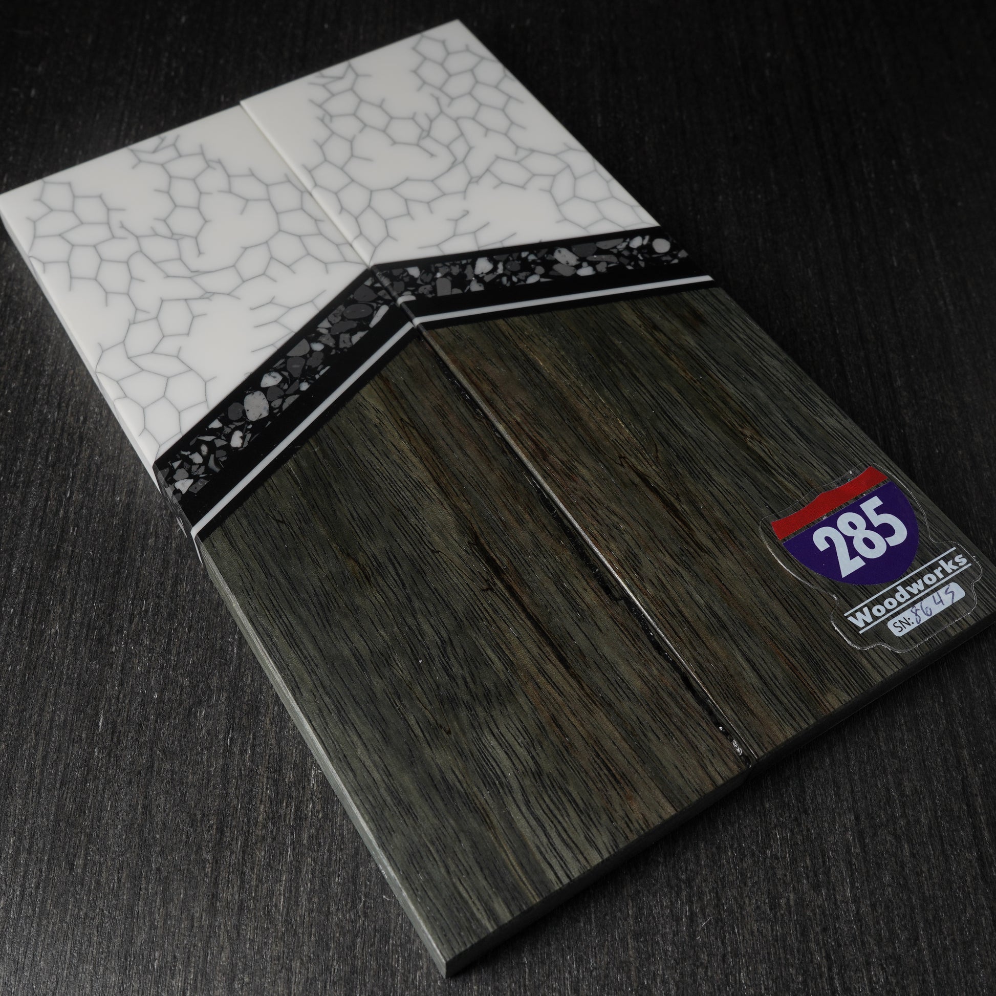 These hand crafted segmented knife scales are made one at a time using house stabilized woods and hand cast resin components. They ship flat, even, and ready for glue up. The scales pictured will be the exact set you receive. Buy with complete confidence.