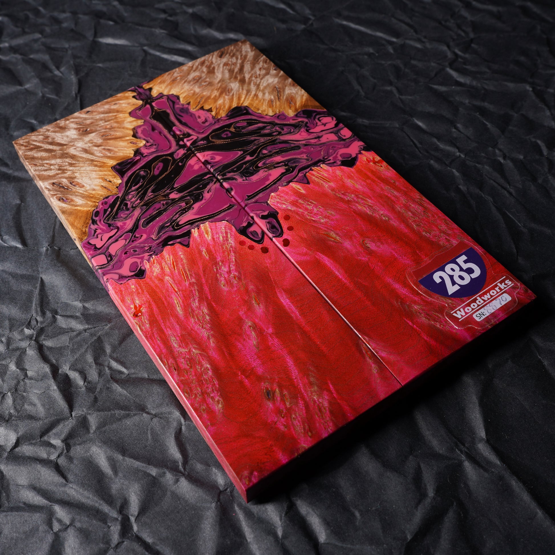 Our metal mesh hybrid knife scales are our newest form of hybrid knife scale. Each set is handmade individually from stabilized burl and urethane resin.