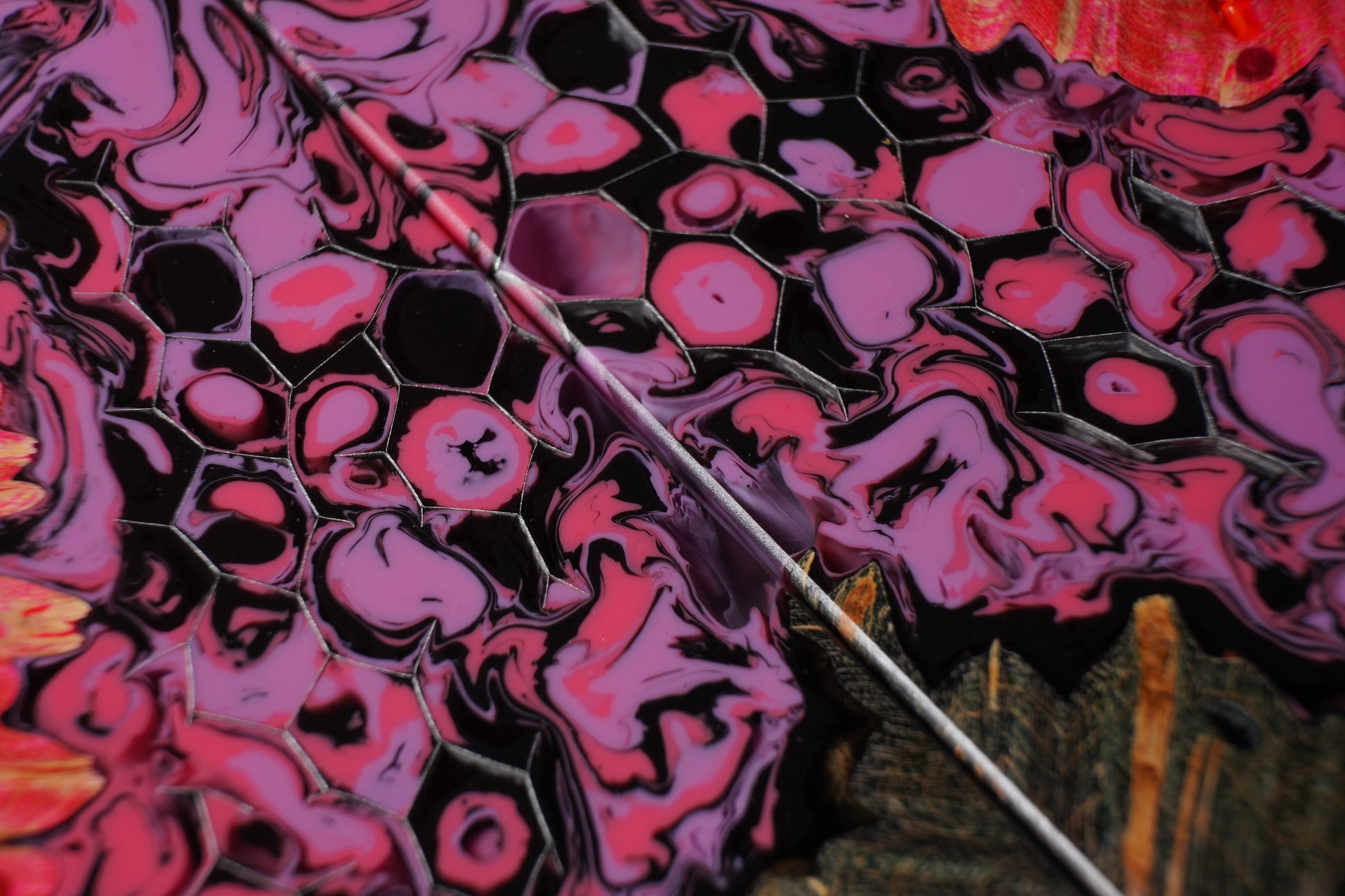For additional texture we add distressed aluminum honeycomb which channels the colors in interesting and unique ways.