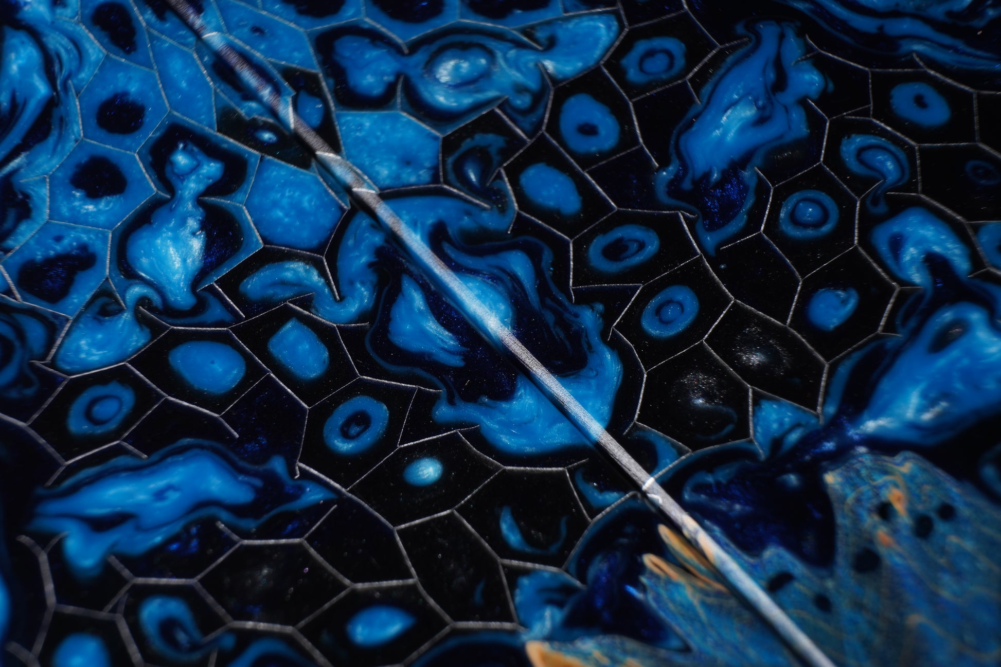 Our honeycomb knife scales are our most popular form of hybrid knife scale. Each set is handmade individually from stabilized burl and urethane resin.