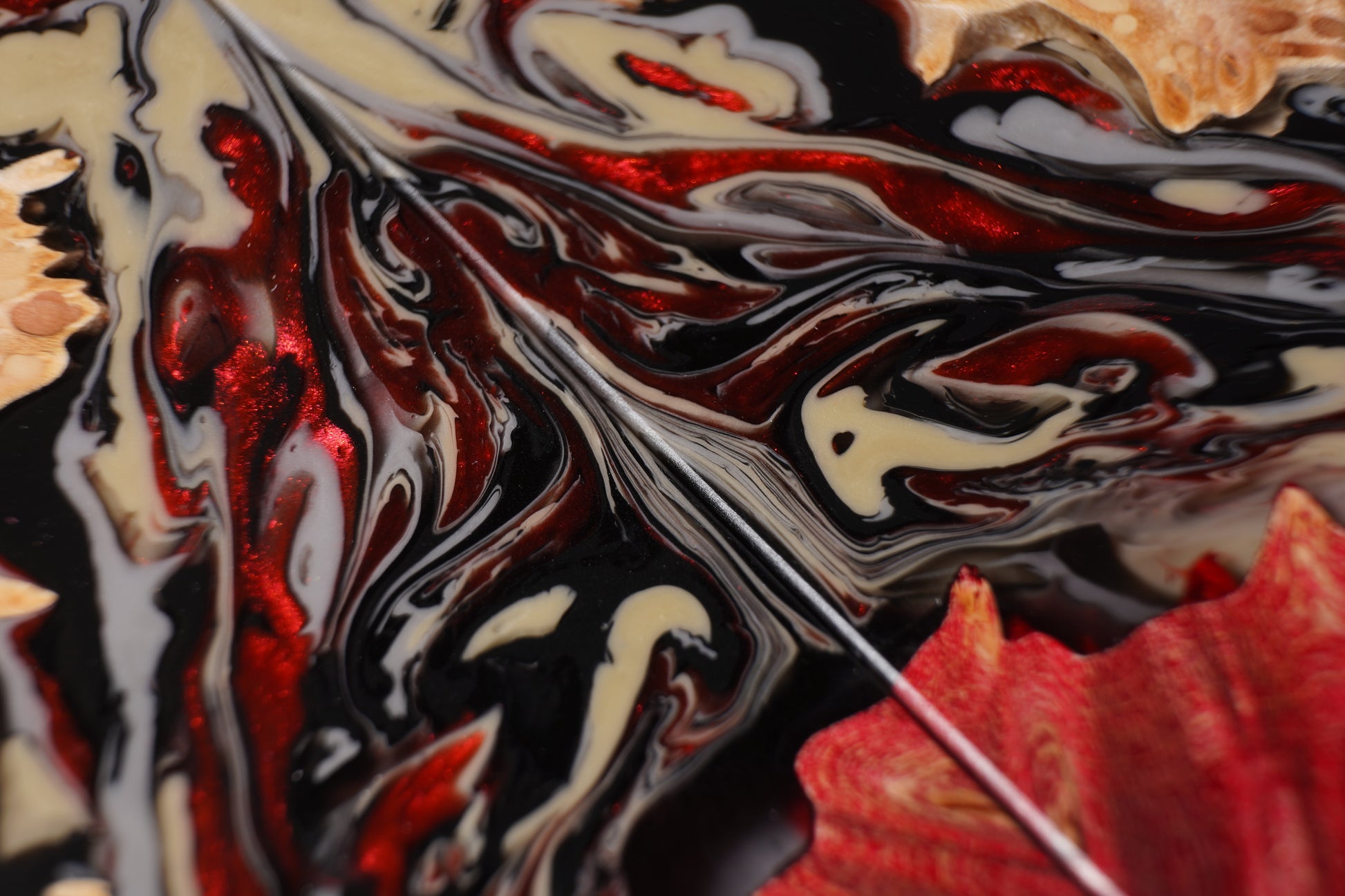 Our hybrid knife scales are made one at a time from vacuum stabilized burl wood and urethane resin. Resulting in a truly unique and exceptional handle.