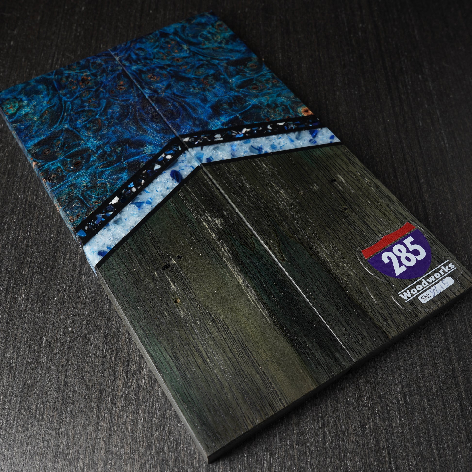 These hand crafted segmented knife scales are made one at a time using house stabilized woods and hand cast resin components. They ship flat, even, and ready for glue up. The scales pictured will be the exact set you receive. Buy with complete confidence.