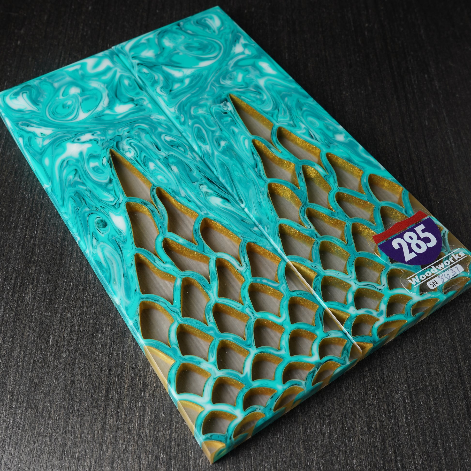 Introducing the Stingray line of knife scales. These handmade knife scales are made of 100% shock resistant urethane resin. Great for all-whether EDC and kitchen knives where high moisture may be present. They're easy on your tools and shape and polish effortlessly. A great choice for a long lasting handle material for your next knife build. All our scales have been sanded to 220 and then coated with lacquer on the book-matched face to highlight their unique color and pattern.