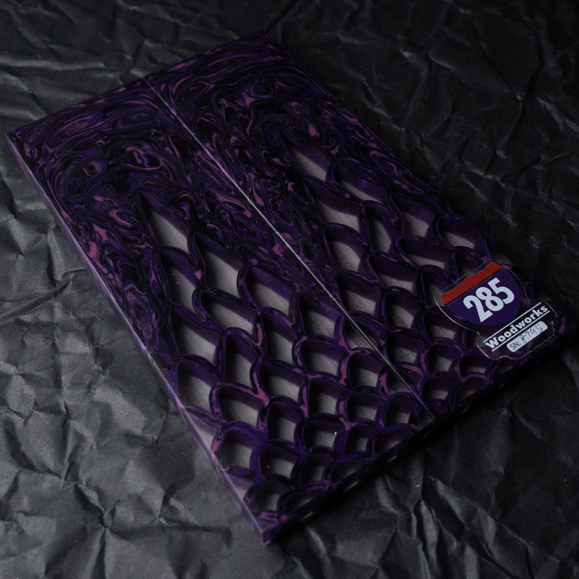 Introducing the Stingray line of knife scales. These handmade knife scales are made of 100% shock resistant urethane resin. Great for all-whether EDC and kitchen knives where high moisture may be present. They're easy on your tools and shape and polish effortlessly. A great choice for a long lasting handle material for your next knife build. All our scales have been sanded to 220 and then coated with lacquer on the book-matched face to highlight their unique color and pattern.
