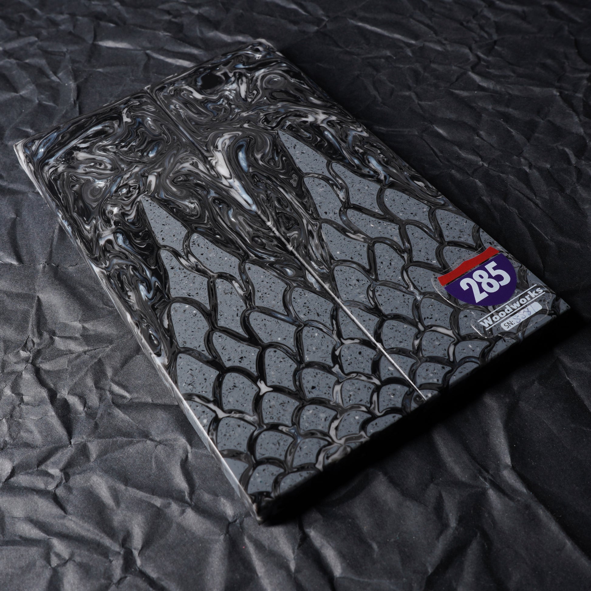 Introducing the Stingray line of knife scales. These handmade knife scales are made of 100% shock resistant urethane resin. Great for all-whether EDC and kitchen knives where high moisture may be present. They're easy on your tools and shape and polish effortlessly. A great choice for a long lasting handle material for your next knife build. All our scales have been sanded to 220 and then coated with lacquer on the book-matched face to highlight their unique color and pattern.