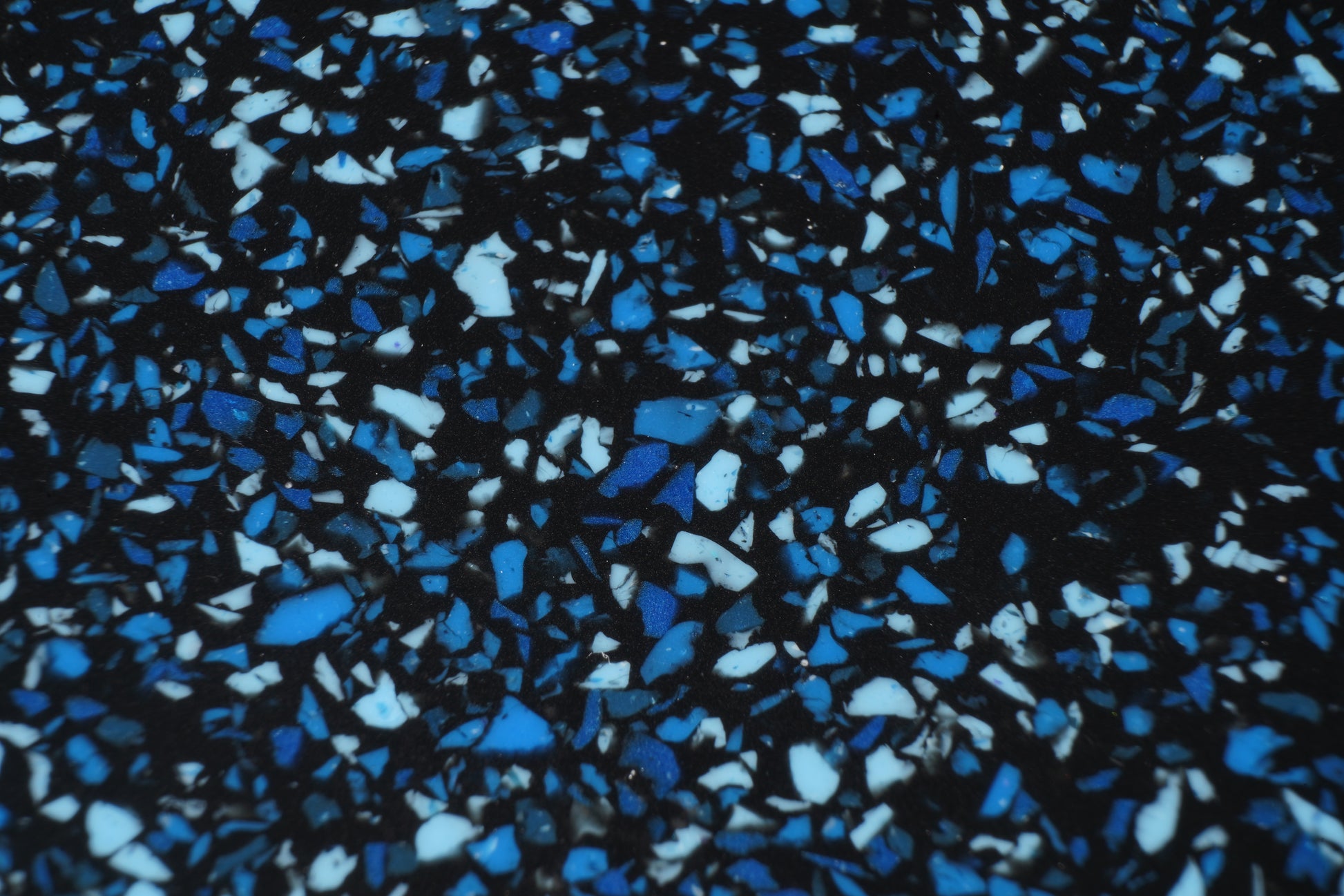 Fresh and dynamic, Tidal Pebble blends bright blue, deep cobalt, and crisp aqua fragments within a jet-black base. The scattered pebble pattern captures the movement and energy of ocean tides, creating a striking, high-contrast look that feels both natural and modern.