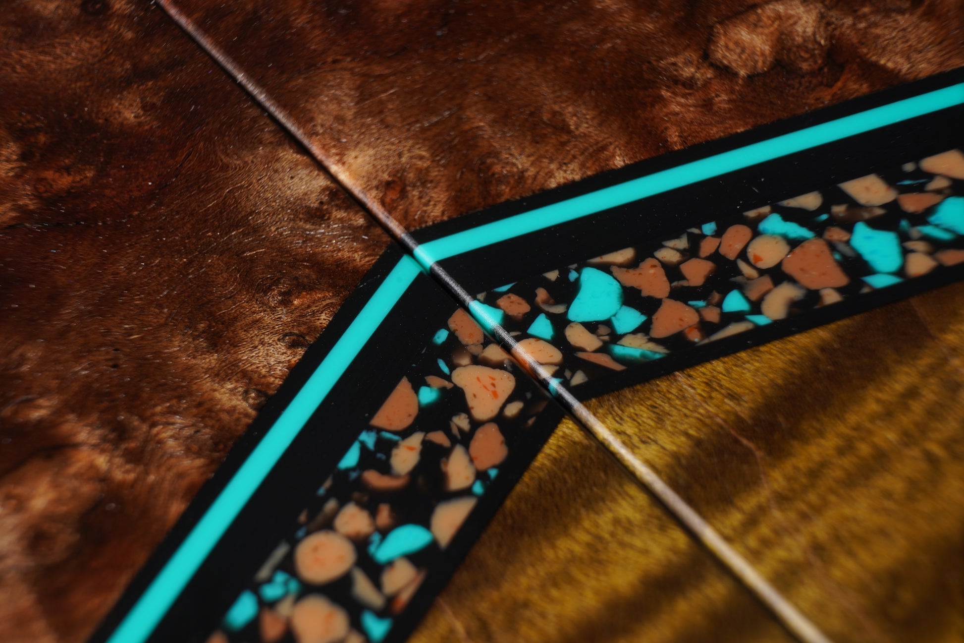 Vivid and bold, Tucson Pebble captures the spirit of the Southwest with a mix of bright turquoise fragments and warm sandstone tones set against a black base. The pebble pattern evokes desert landscapes under a clear blue sky, balancing earthy warmth with vibrant color.